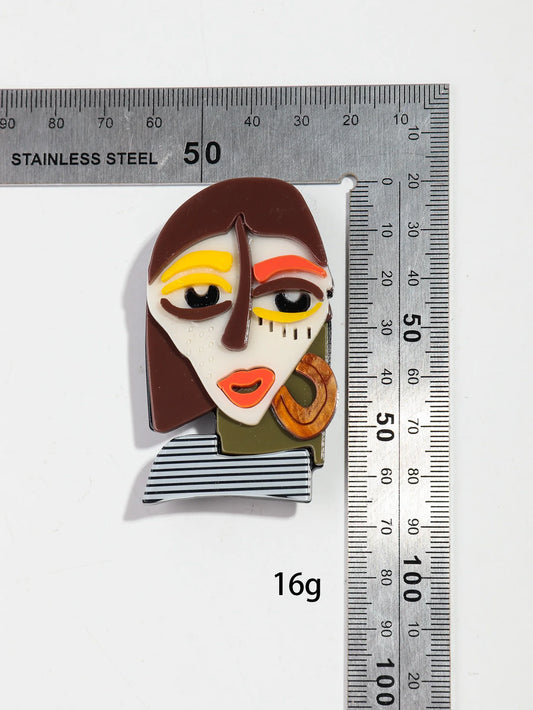 Vibrant Abstract Art Portrait Brooch Pin